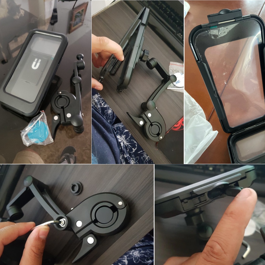 Giới thiệu Giá đỡ kẹp điện thoại loại lớn kèm ốp chống mưa chống nước chuẩn IPX4 kẹp vào ghi đông kẹp gắn kính chiếu xe đạp, xe máy