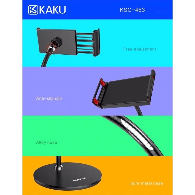Giá đỡ kẹp điện thoại, máy tính bảng, iPad để bàn chính hãng KaKu, góc xoay linh hoạt, chắc chắn- Giúp bạn giải phóng đôi tay, tự do thư giãn đọc báo, xem phim, chụp ảnh, quay video, livestream cả ngày mà không lo mỏi tay.