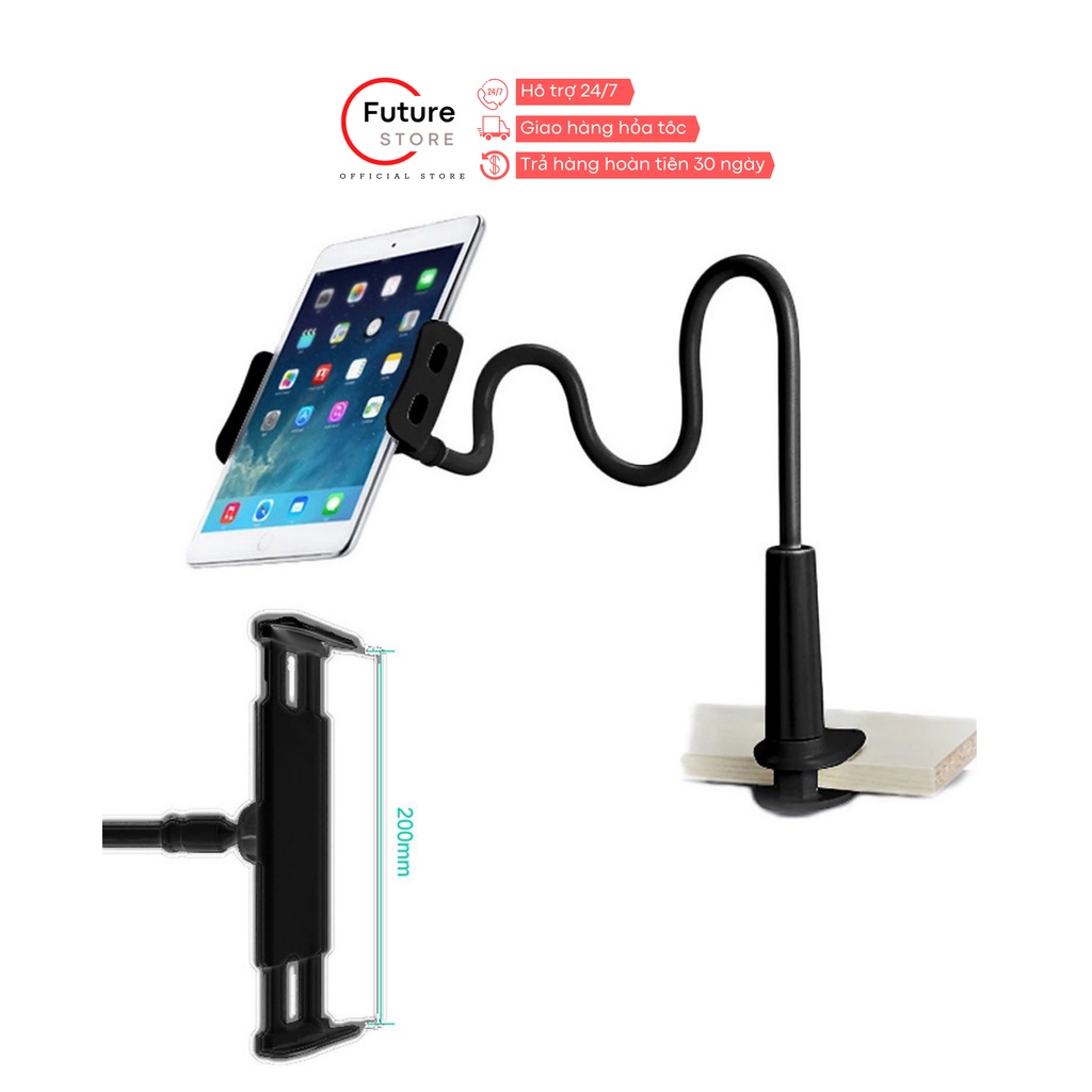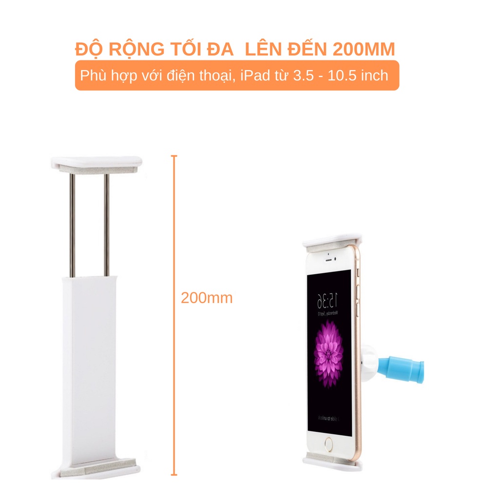 Giá đỡ kẹp điện thoại di động, với kẹp cao su có thể mở tối đa tới 200mm, có thể được gắn chắc chắn vào khung giường, đầu giường, bàn, để tay bạn thoải mái, mang lại cho bạn sự thoải mái tối đa.