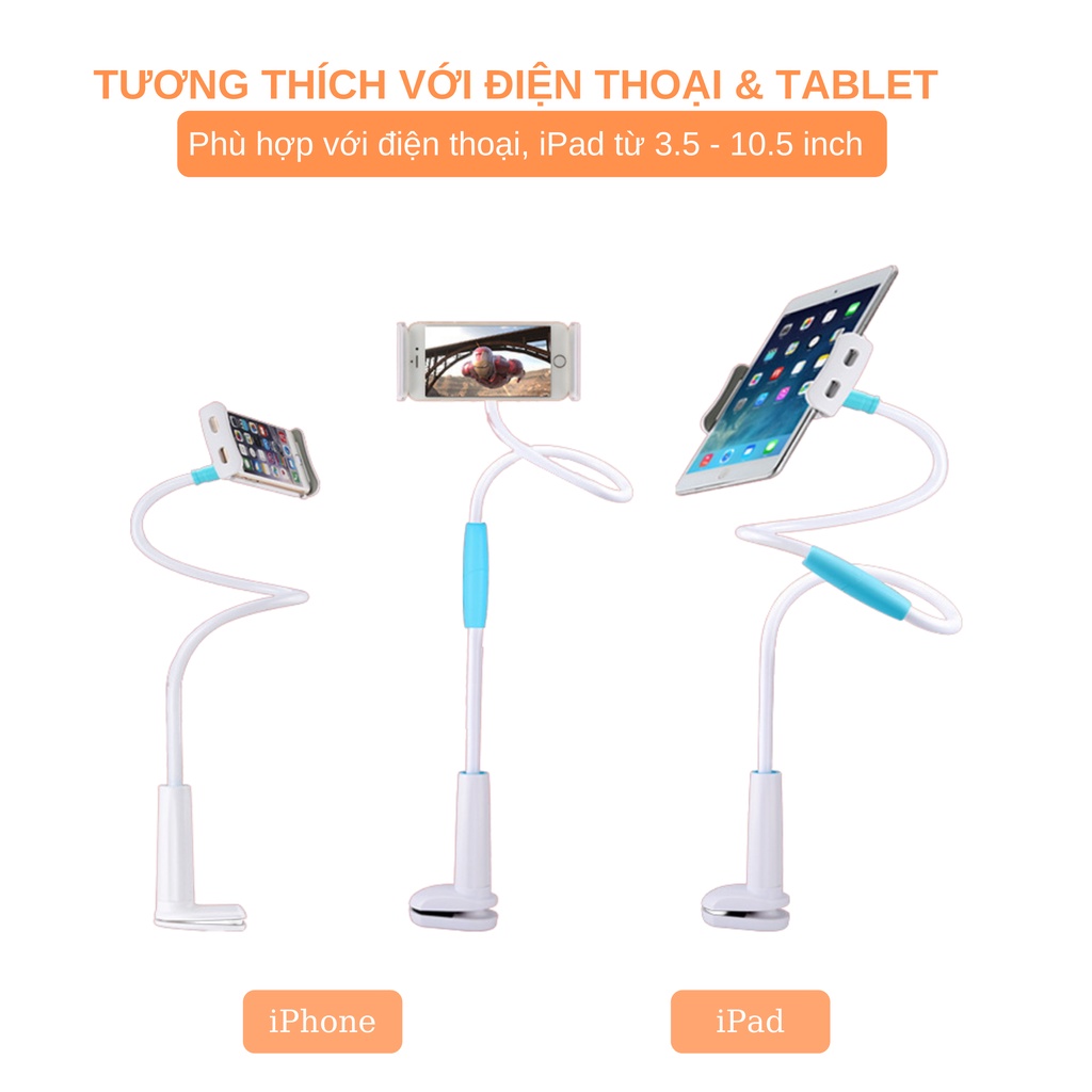 Giá Đỡ Kẹp Điện Thoại, Máy Tính Bảng Có Chân Kẹp Đầu Giường, Cạnh Bàn Hàng Chính Hãng Helios