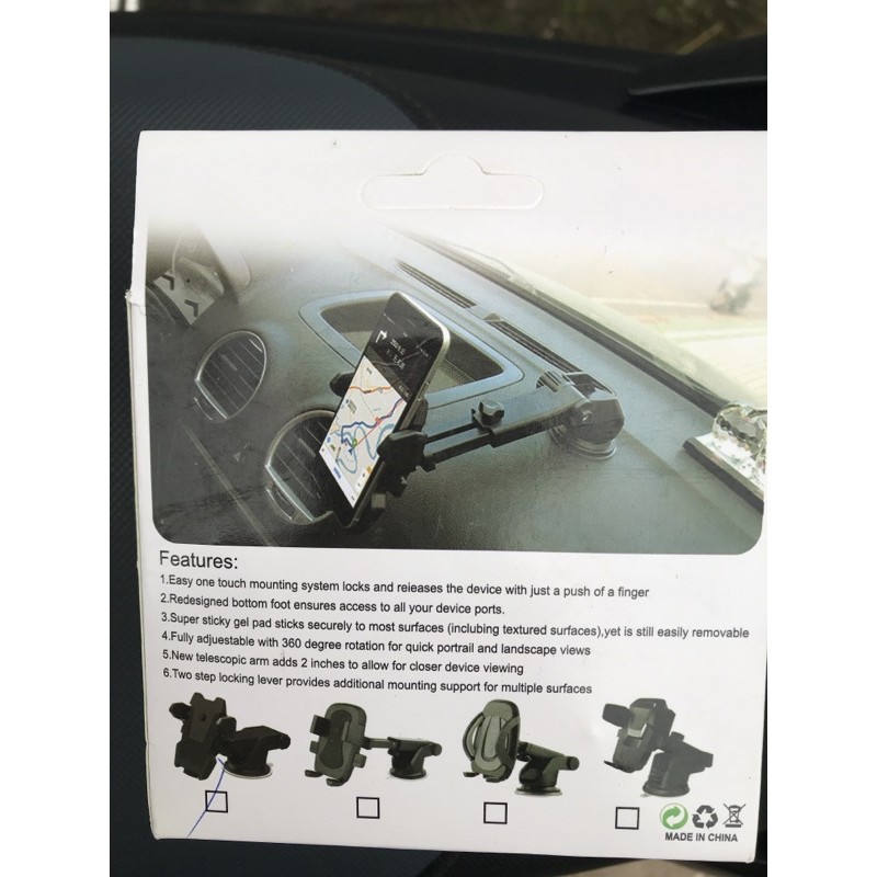 + Kẹp điện thoại trên ô tô sử dụng hút cao su, gắn được ở nhiều vị trí khác nhau, trên kính, trên taplo