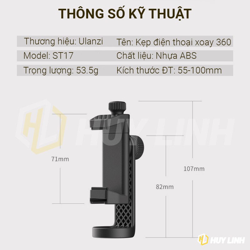 Giới thiệu Giá đỡ kẹp điện thoại Ulanzi ST-17 xoay 360 chụp ngang dọc - Đế gắn ren vít 1/4