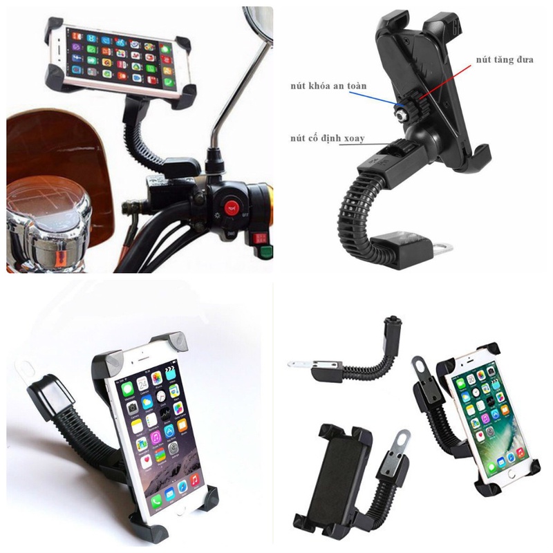 Kẹp xe máy 4 góc ( giá đỡ điện thoại 4 góc ) là phụ kiện không thể thiếu cho người điều khiển xe máy , có thể ghi lại hành trình chuyến đi của mình đồng thời nghe gọi thuận lợi , an toàn khi điều khiển xe máy .
