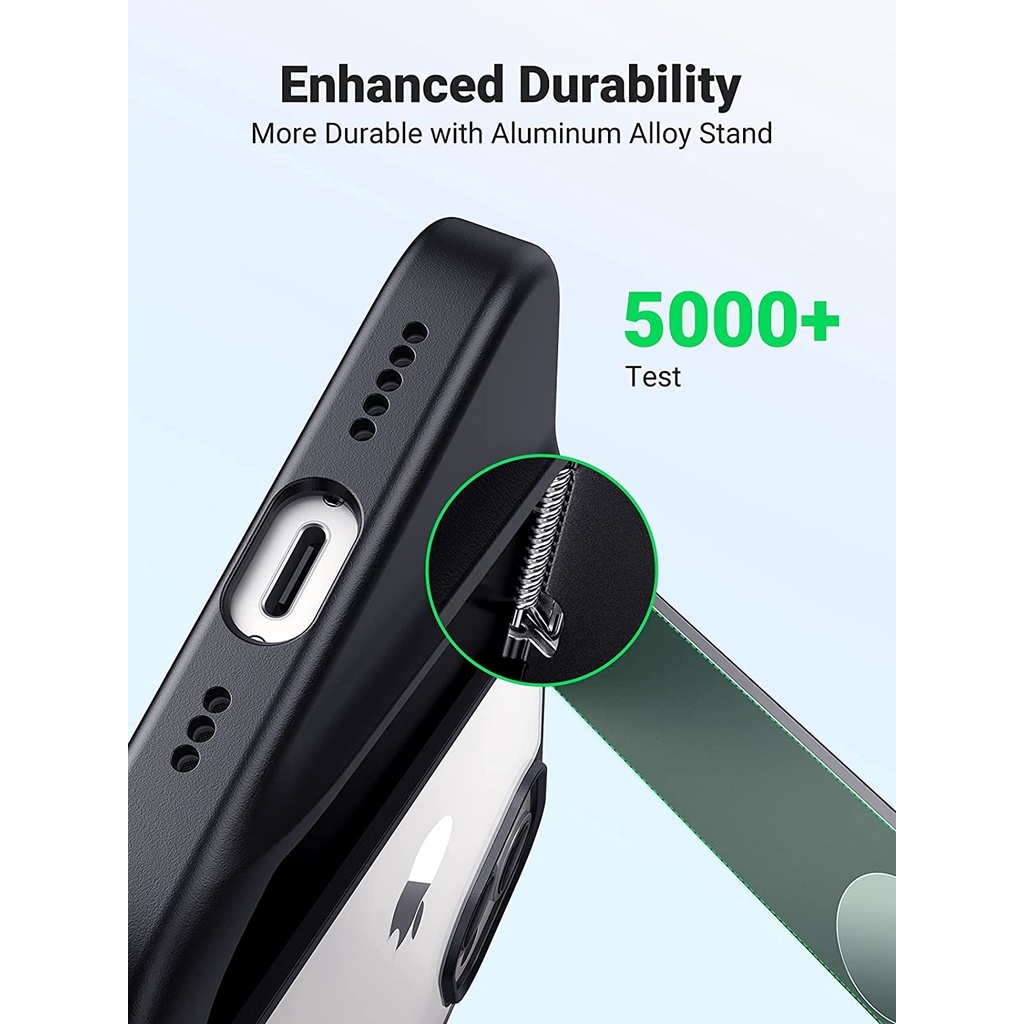 Giá đỡ kiêm ốp lưng 2 in 1 khung kim loại, vỏ trong suốt bảo vệ iPhone 13 kích thước 6.1inch UGREEN 90152Thiết kế thông minh, hỗ trợ góc nhìn dọc và ngang