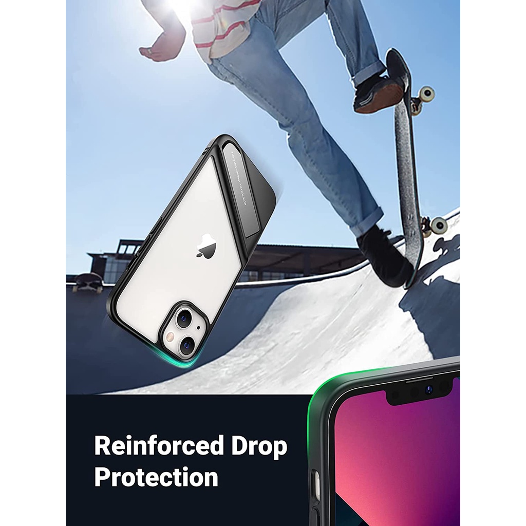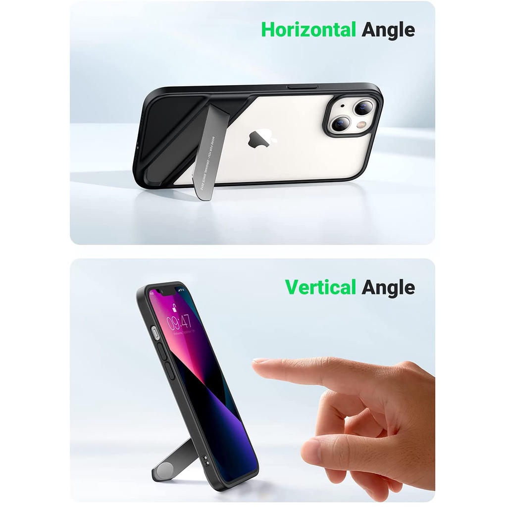 Giá đỡ kiêm ốp lưng 2 in 1 khung kim loại, vỏ trong suốt bảo vệ iPhone 13 kích thước 6.1inch UGREEN 90152Thiết kế thông minh, hỗ trợ góc nhìn dọc và ngang