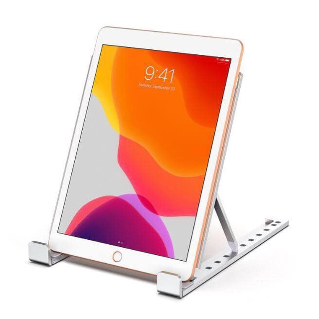 - Đế nhôm được tản nhiệt MacBook, Laptop thiết kế có thể điều chỉnh độ nghiêng với 9 góc khác nhau giúp người dùng giảm đau trên vai, cổ và đặc biệt là vì tầm nhìn vừa tầm nên giúp bạn tránh được tình trạng mỏi mắt.