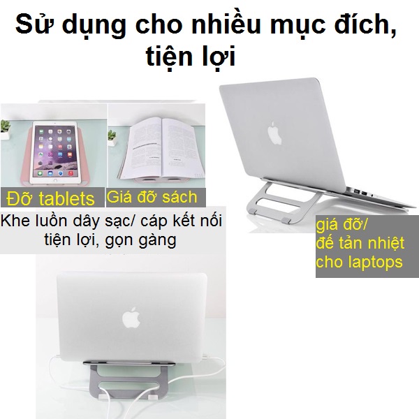 -Sử dụng cho nhiều mục đích: Đỡ tablets, laptops, giá đỡ sách