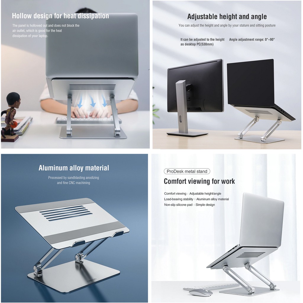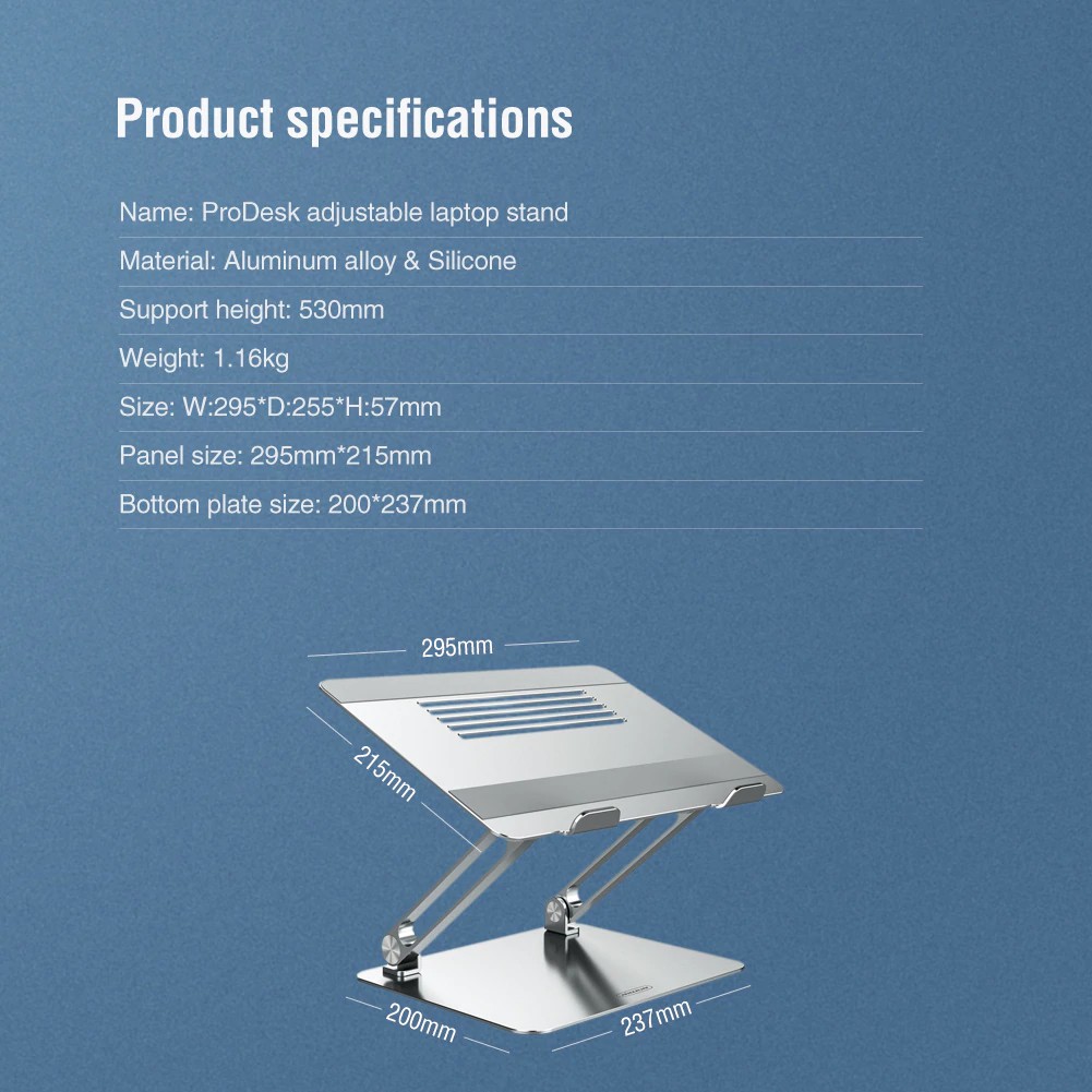 Giá đỡ laptop thương hiệu Nillkin, Name: ProDesk Adjustable Laptop Stand-Chất liệu: Hợp kim nhôm +Silicone