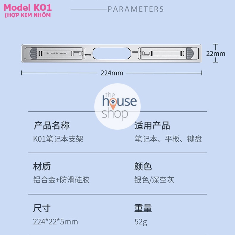- K01 Notebook Stand (điều chỉnh ở 4 chế độ góc nghiêng)