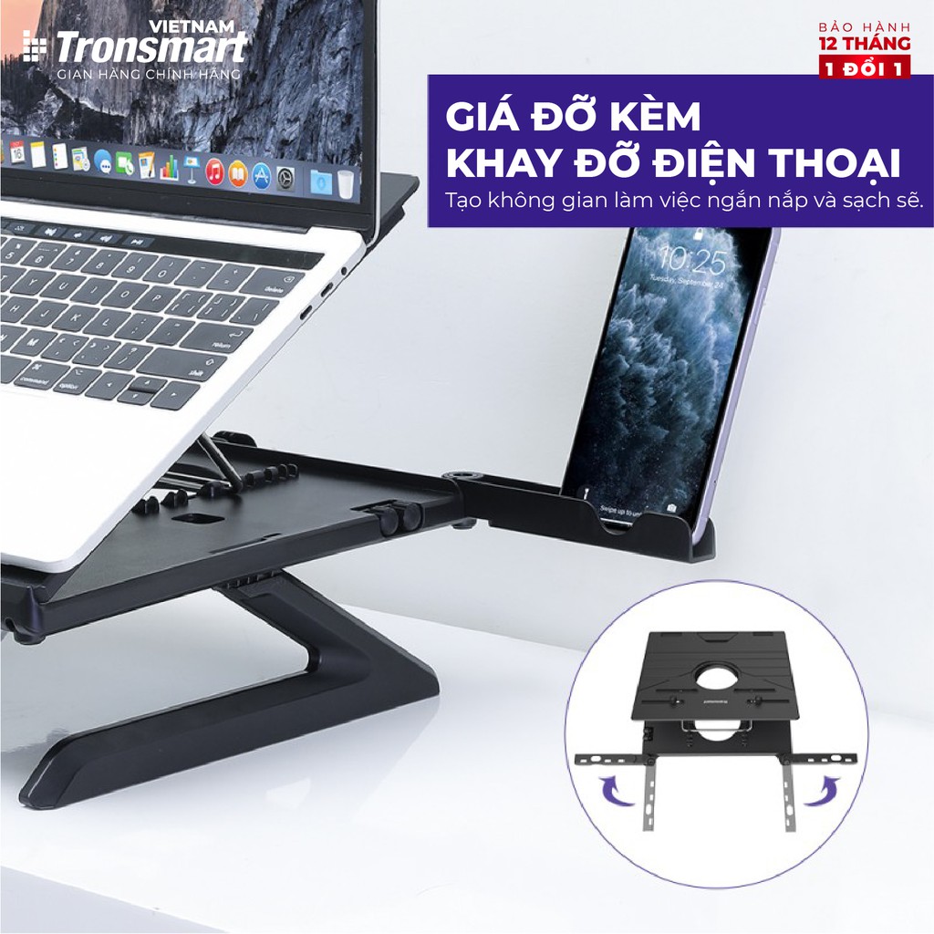 Giá đỡ laptop gấp gọn Tronsmart D07 Điều chỉnh độ cao Kèm giá đỡ điện thoại - Hàng chính hãng - Bảo hành 12 tháng 1 đổi