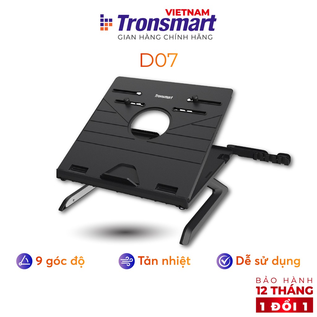 Giá đỡ laptop gấp gọn Tronsmart D07 Điều chỉnh độ cao Kèm giá đỡ điện thoại - Hàng chính hãng - Bảo hành 12 tháng 1 đổi 1Giá đỡ laptop nhựa ABS gấp gọn với 9 góc độ điều chỉnh độ cao, bề mặt lót silicol giúp laptop không bị sát trầy xước, ảnh hưởng đến quá trình tản nhiệt, tăng tuổi thọ cho thiết bị.