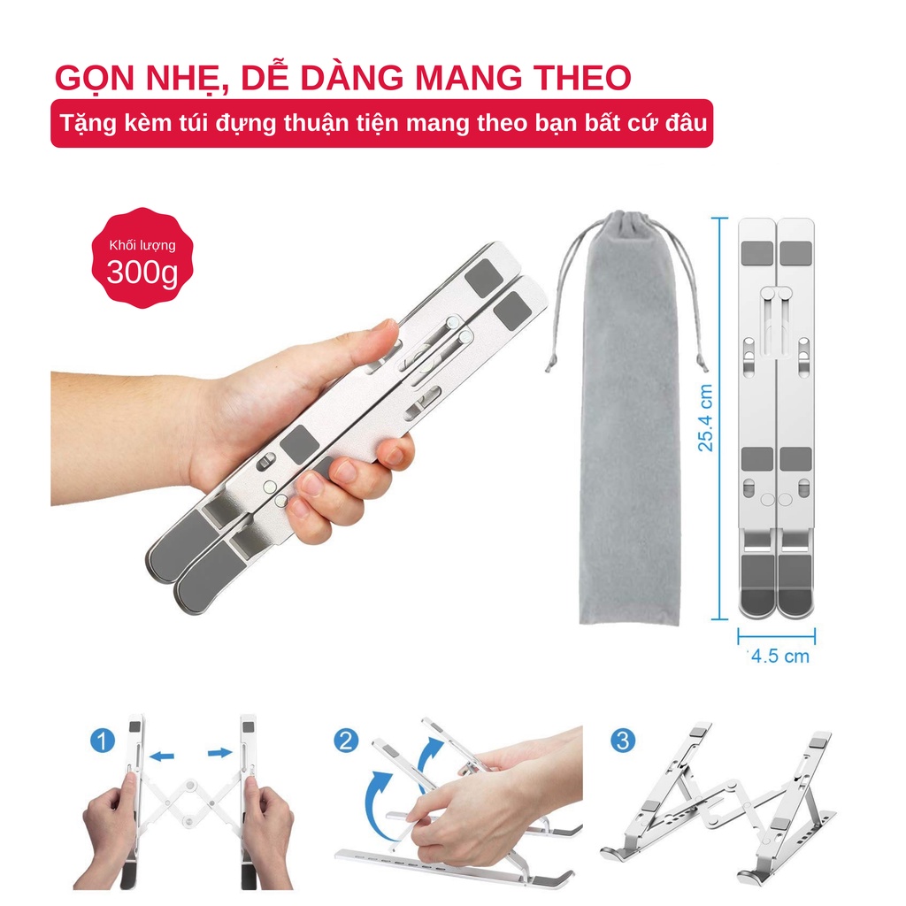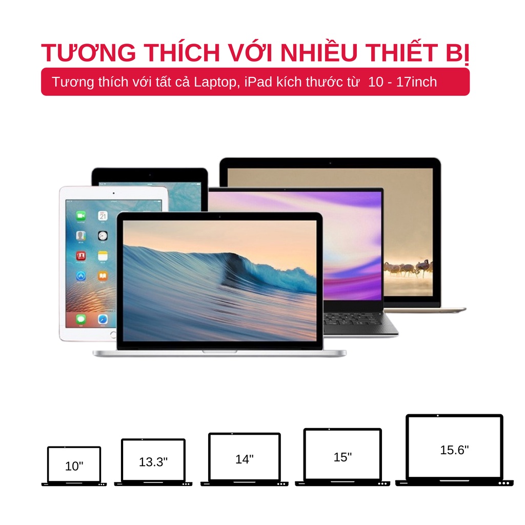 Phù hợp với Macbook, Máy tính xách tay, laptop, iPad từ 10-15,6 inch.Chất liệu: Hợp kim nhôm cao cấp, bền đẹp. Làm sang trọng văn phòng làm việc của bạn
