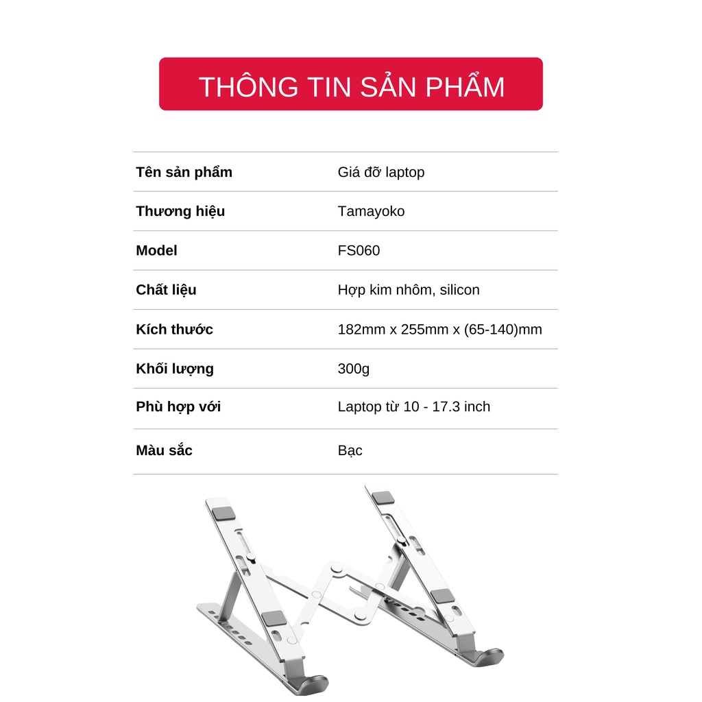 Thương hiệu: Tamayoko | Xem thêm các sản phẩm Giá đỡ Laptop của TamayokoMô tả ngắn