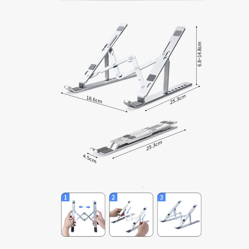 -Giá đỡ laptop MacBook nhôm có thể gập gọn mang theo hàng ngày rất tiện dụng, sau khi gấp gọn kịch thước chỉ ngang 1 chiếc quạt giấy.