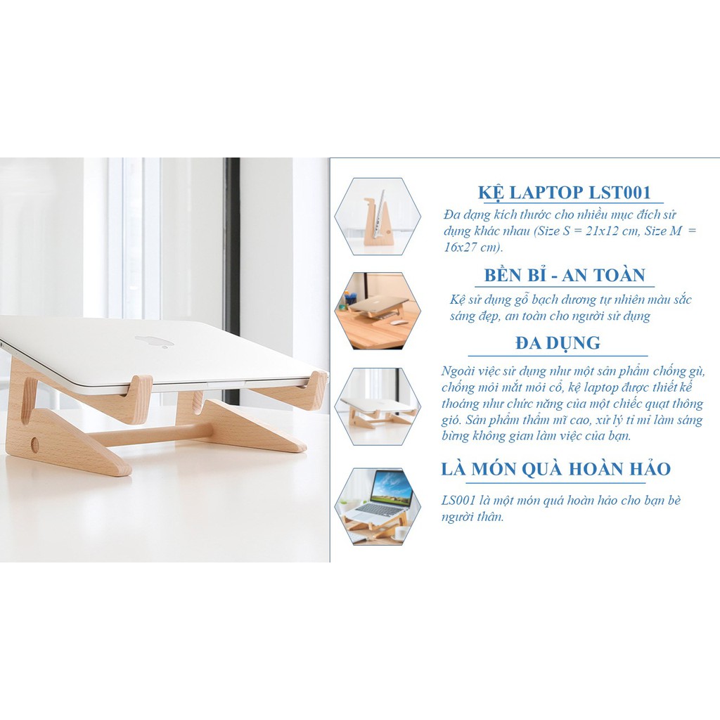 【KỆ LAPTOP CLASSIC CÓ 2 SIZE S, SIZE L 】Size S: 12 x 21 cm ( Laptop từ 13 inch trở xuống nên dùng loại này)