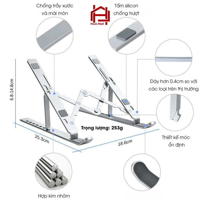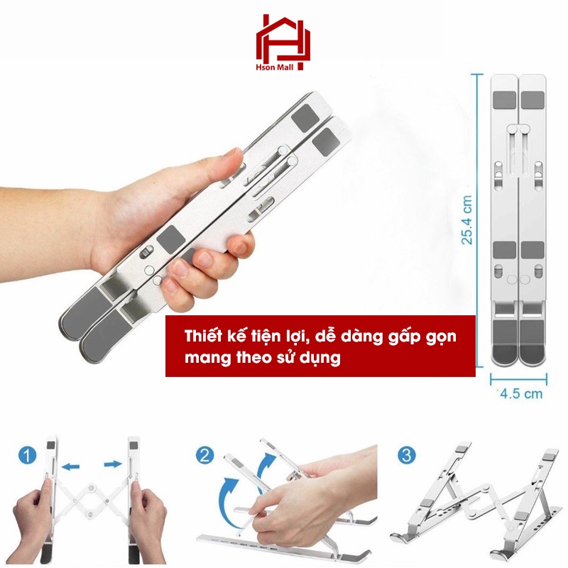 Giới thiệu Giá đỡ laptop, kê macbook bằng NHÔM 2 CHỐT CAO CẤP gấp gọn, kệ đỡ máy tính HSON tản nhiệt, chịu lực siêu tốt