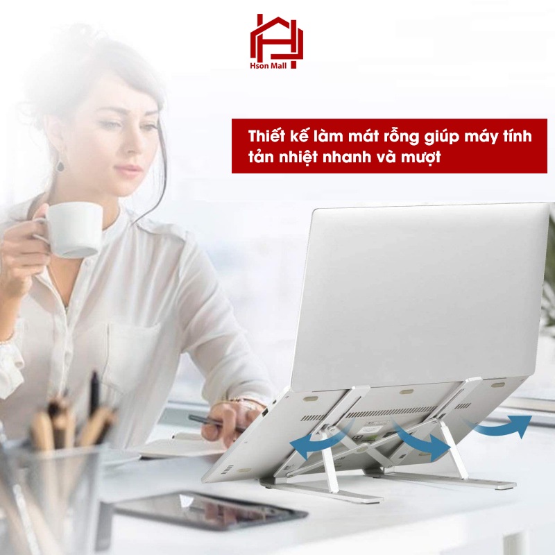 Giá đỡ laptop, kê macbook bằng NHÔM 2 CHỐT CAO CẤP gấp gọn, kệ đỡ máy tính HSON tản nhiệt, chịu lực siêu tốt