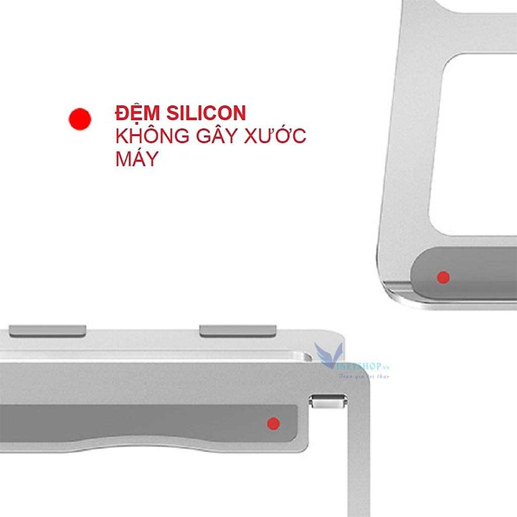 - Các pad silicon được đặt ở vị trí tiếp xúc với mặt bàn, laptop, nhằm tăng tính ma sát, chống trơn trượt, giữ thiết bị cố định an toàn