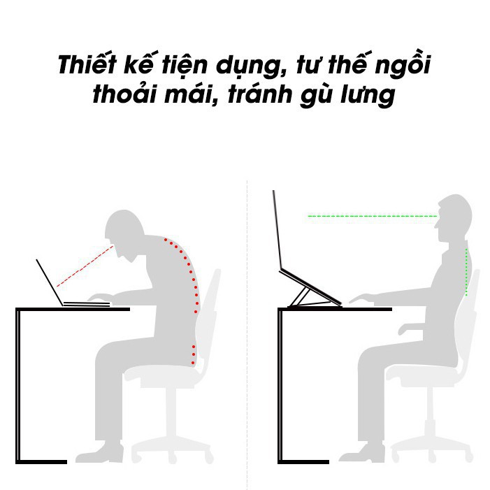 - Giúp điều chỉnh vị trí đặt laptop cho phù hợp với góc nhìn của người dùng