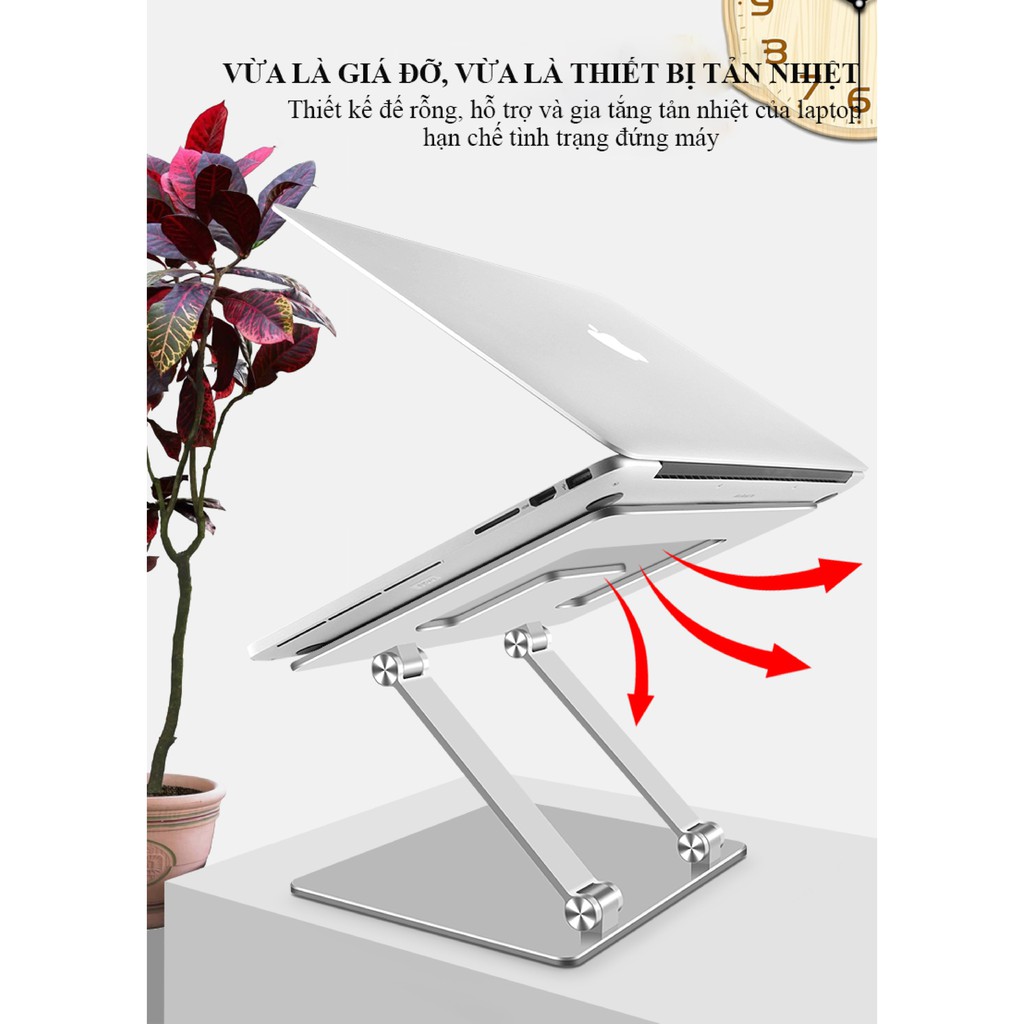 Giá Đỡ Laptop Macbook Để Bàn Chất Liệu Hợp Kim Nhôm Cao Cấp Tản Nhiệt – Nâng Hạ Điều Chỉnh Độ Cao - Gấp Gọn Cho Kích Cỡ 10-18 InchesĐẶC ĐIỂM NỔI BẬT :
