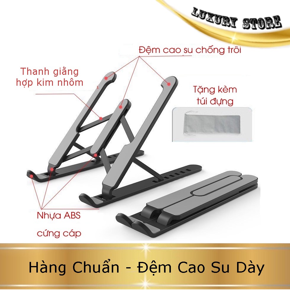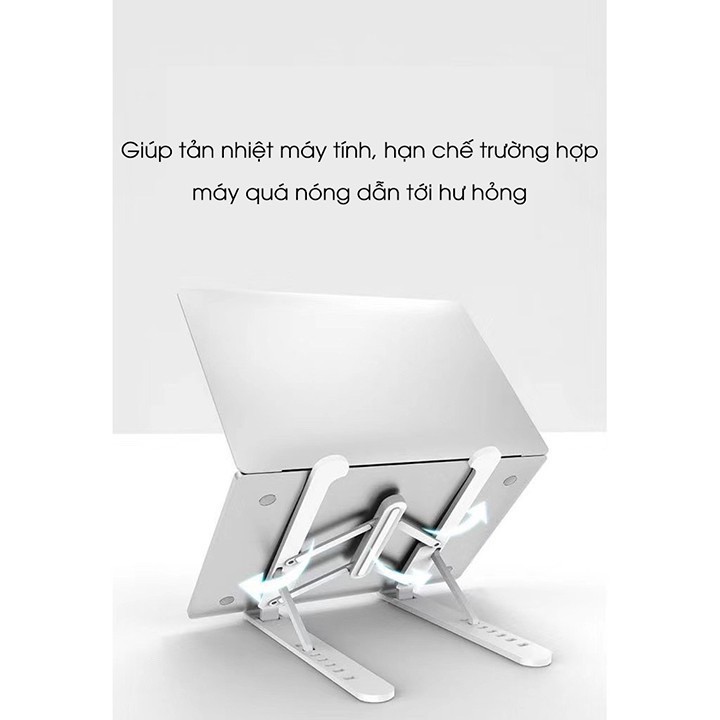 Giá Đỡ Laptop Macbook gấp gọn, Giúp tản nhiệt máy tính Chống Trượt 6 Nấc Chỉnh Độ Cao