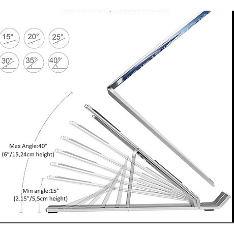 - Có thể linh hoạt tuỳ chỉnh độ cao theo 7 cấp độ nâng laptop lên từ 5,5cm -15cm :