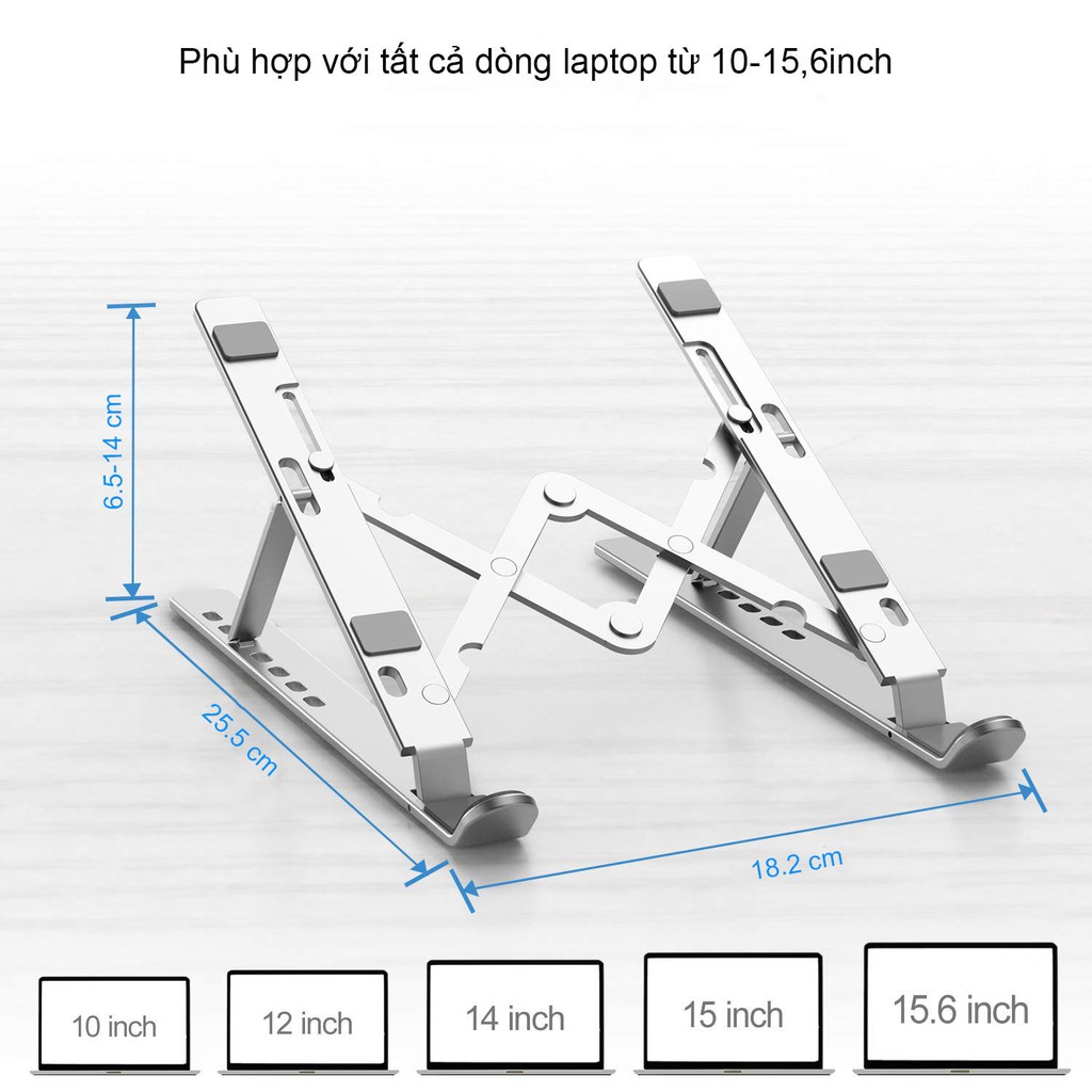 Giá đỡ laptop,macbook hợp kim nhôm phù hợp mọi dòng máy tính ,hổ trợ tản nhiệt điều chỉnh 7 cấp gấp gọn mang theo CÓ TÚI ĐỰNG ĐI KÈM- Giá đỡ laptop MacBook, Ipad, máy tính bảng, Surface... bằng hợp kim nhôm + có thể xếp gọn + điều chỉnh độ cao.
