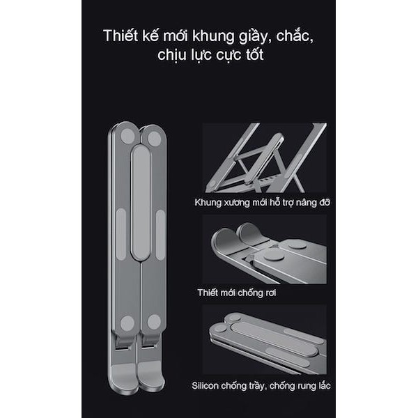 - Giá đỡ laptop MacBook, Ipad, máy tính bảng, Surface... bằng hợp kim nhôm + có thể xếp gọn + điều chỉnh độ cao.- Giá đỡ laptop MacBook rất thích hợp cho các bạn dân văn phòng công sở, hạn chế được các các bệnh liên quan đến lưng cột sống và đốt sống cổ.
