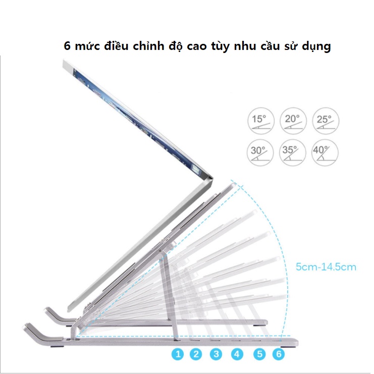 Giá Đỡ Laptop , Macbook , Ipad Chất Liệu Bằng Nhôm , Điều Chỉnh Độ Cao , Chống Mỏi Cổ Mỏi Lưng , Hỗ Trợ Tản Nhiệt Tốt