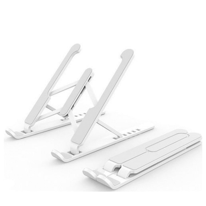 Chất liệu: Nhựa + chất liệu silicone Phong cách: gấp gọn, có thể điều chỉnh độ cao Trọng lượng: 220g Chịu tải: khoảng 40 kg Kích thước: Kích thước gấp lại: 260 * 60mm Kích thước mở rộng: 260 * 190 * 100-160mmGiá đỡ laptop ipad, ipad pro Dùng để đỡ laptop các cỡ (13~15.6inch) và máy tính bảng Linh hoạt tuỳ chỉnh độ cao theo nhiều cấp độ. Chống mỏi lưng, mỏi cổ, hạn chế các bệnh lý khi làm việc quá nhiều với máy tính. Khe thoáng giúp tản nhiệt laptop rất hiệu quả. Đệm cao su chống trơn trượt. Xách tay và có thể gập lại. Điều chỉnh chiều cao. Tản nhiệt đáy rỗng. Đáy silicon chống trượt.