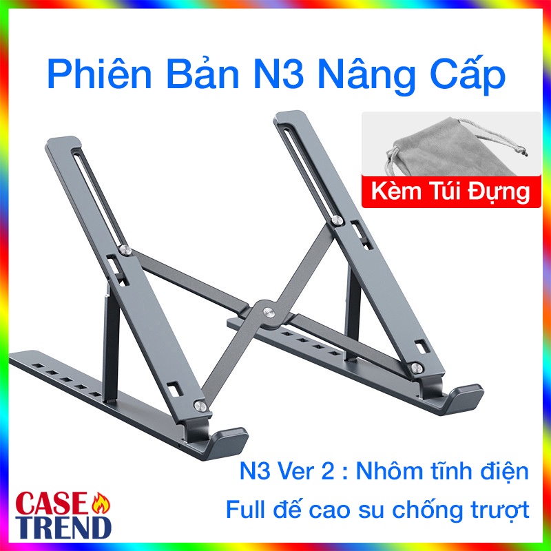 Giá đỡ laptop, ipad, macbook để bàn kèm túi đựng có thể gấp gọn chính hãng MC. Giá đỡ nhôm nâng cấp, chịu lực cao, dùng để kê ipad, laptop, macbook từ 10 đến 15.6 inch.Giá đỡ thiết kế khá chắc chắn, laptop mình 14 inch đang dùng loại N3. Độ cân bằng ổn, có rung 1 xíu khi đè mạnh ở 1 bên, chơi game, gõ bàn phìm thông thường thì ổn áp không vấn đề gì.