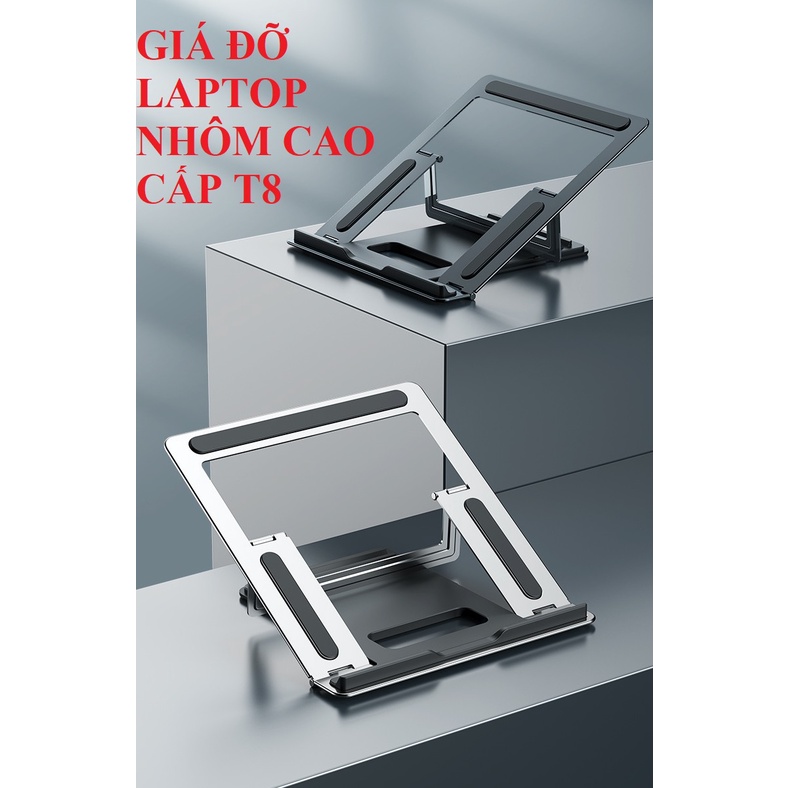 Giá đỡ laptop nhôm tản nhiệt có thể gấp gọn T8, P5, L210 kích thước lớn cho laptop, macbook, ipad, máy tính bảng cao cấpGiá đỡ laptop nhôm tản nhiệt có thể gấp gọn T8 kích thước lớn cho laptop, macbook, ipad, máy tính bảng cao cấp điều chỉnh độ cao, chắc chắn, gọn gàng, tản nhiệt tốt.