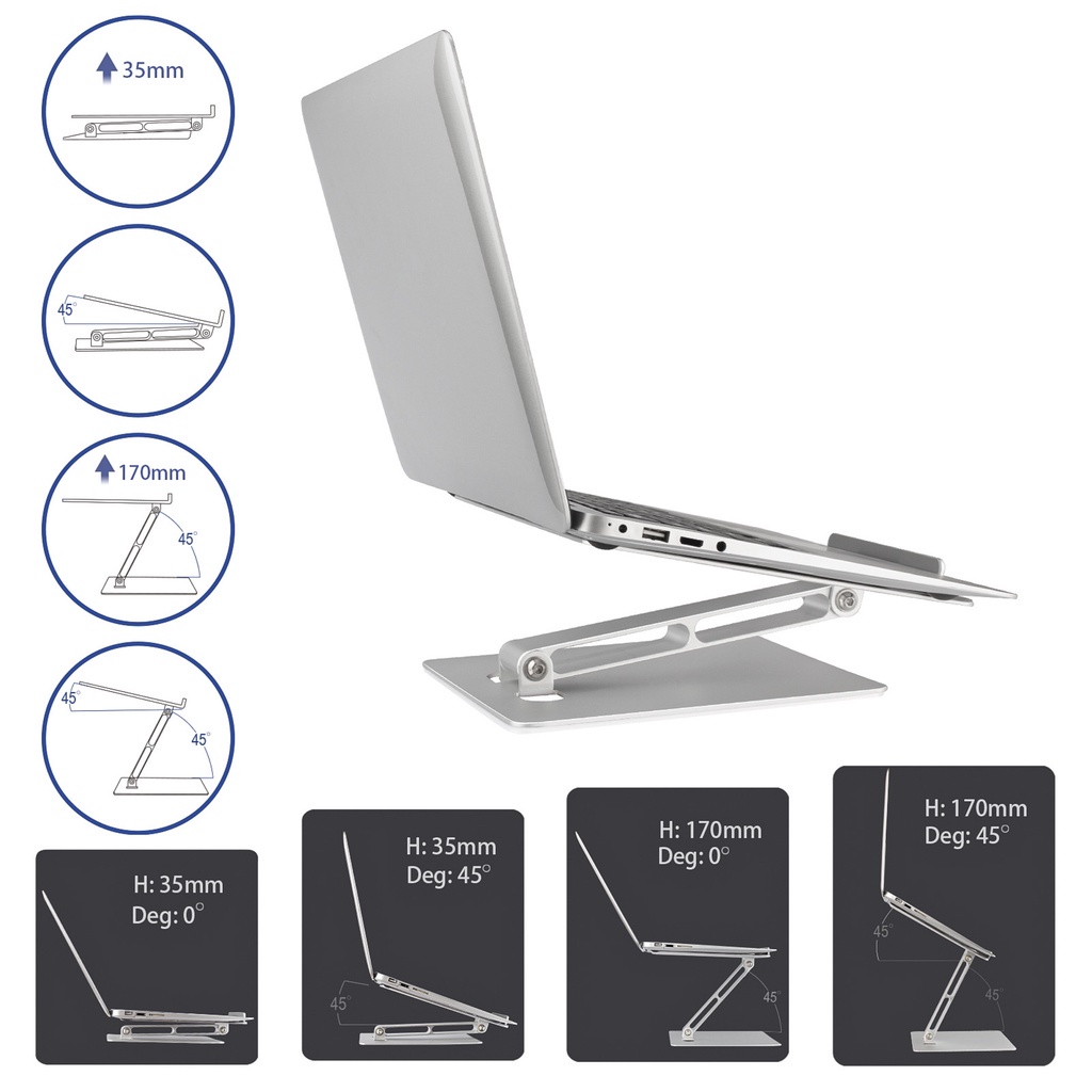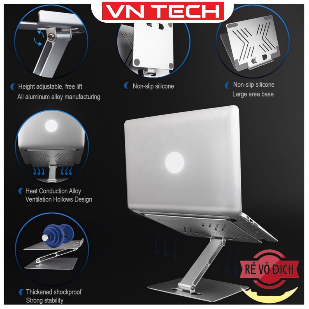 => thiết kế công thái học, chỉnh độ cao, góc nghiêng chống mỏi vai gáy khi sử dụng laptop