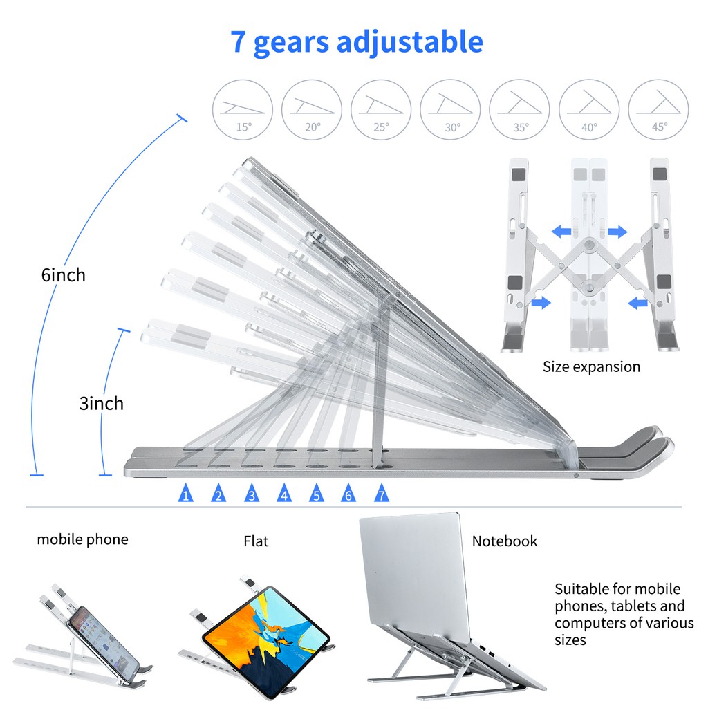 Điện Thoại & Phụ Kiện > Phụ kiện > Phụ kiện selfie > Giá đỡ || Giá Đỡ Laptop/Macbook NHÔM CAO CẤP - 7 mức điều chỉnh độ cao, Tản nhiệt laptop 15,6 inch SL-709 new 2021Còn hàng