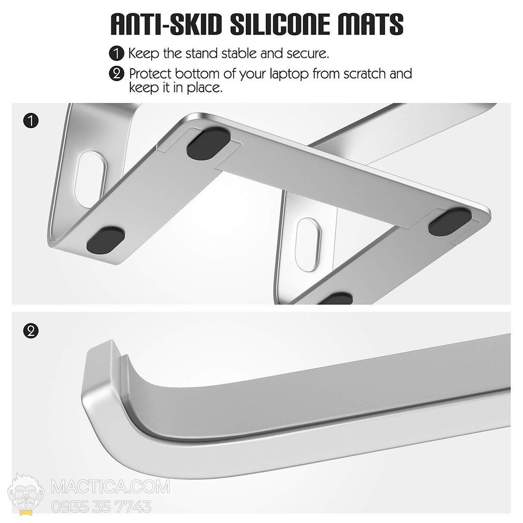 - Hợp kim cường độ cao, chân đế khá chắc chắn và có cạnh nhẵn giúp bảo vệ máy tính yêu dấu của bạn khỏi bị trầy xước.