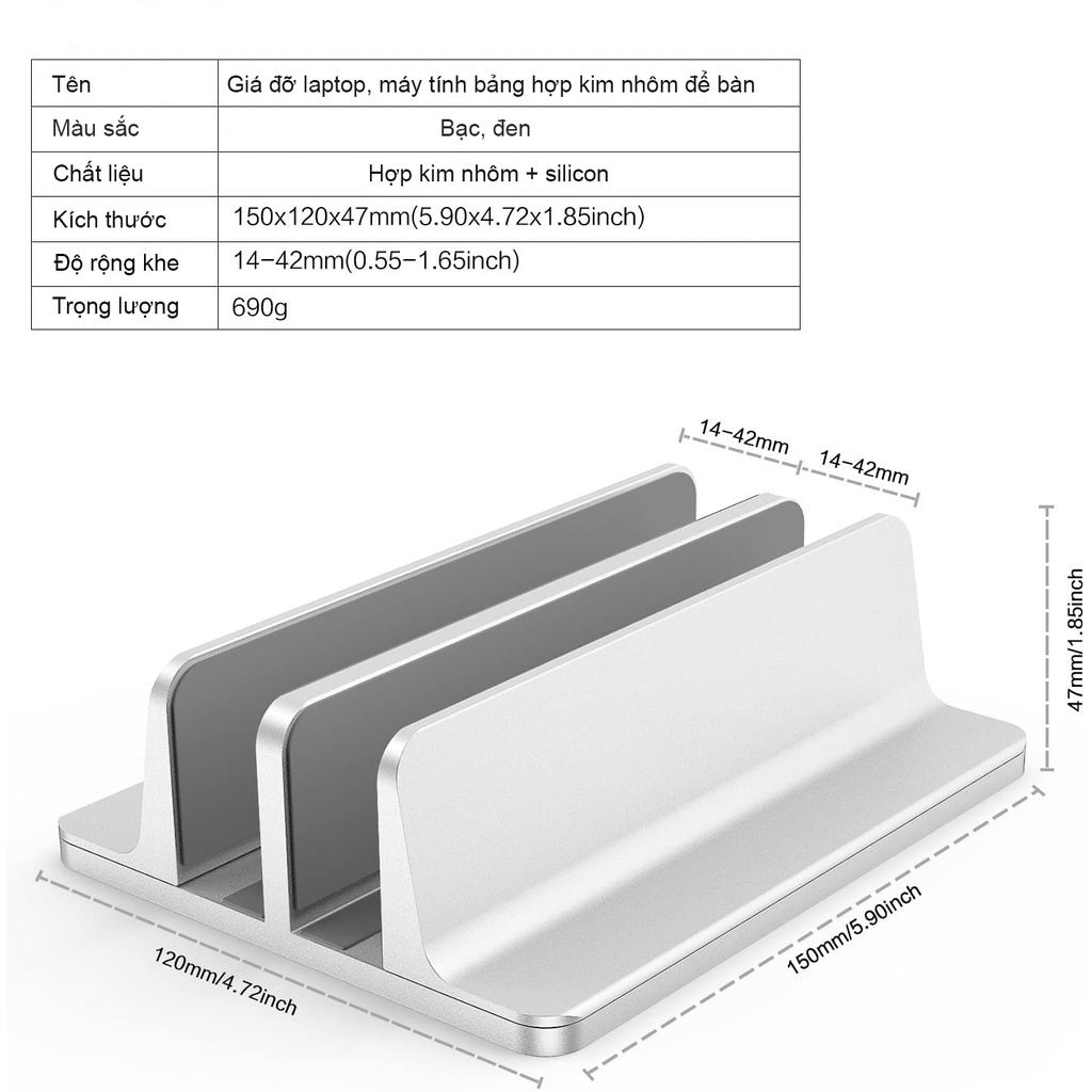 Giá đỡ laptop 2 trong 1 tương thích rộng dùng cho laptop, máy tính bảng, điện thoạiKhe để thiết bị có dễ dàng điều chỉnh độ rộng