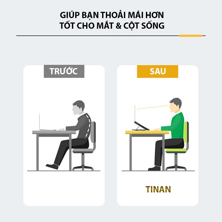 - Thiết kế công thái học: Nó có thể nâng máy tính xách tay lên chiều cao và góc độ lý tưởng, vì vậy bạn có thể có được tư thế tốt hơn trong nhiều giờ làm việc hoặc giải trí, đồng thời giảm đau cổ và lưng.