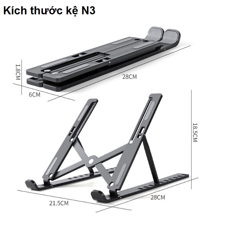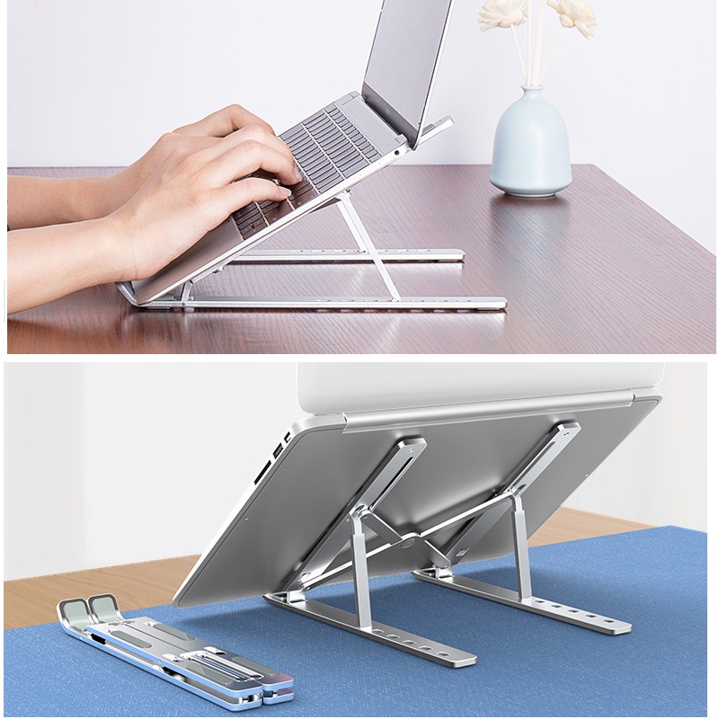 Giới thiệu Giá đỡ laptop, máy tính bảng, điện thoại, macbook 13 - 17 inch bằng kim loại có thể gấp gọn điều chỉnh độ cao