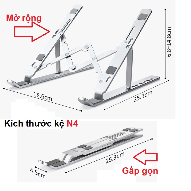 - Giá đỡ N4 có 7 lỗ thay đổi mức Chiều cao từ : 6.8cm đến 14.8cm