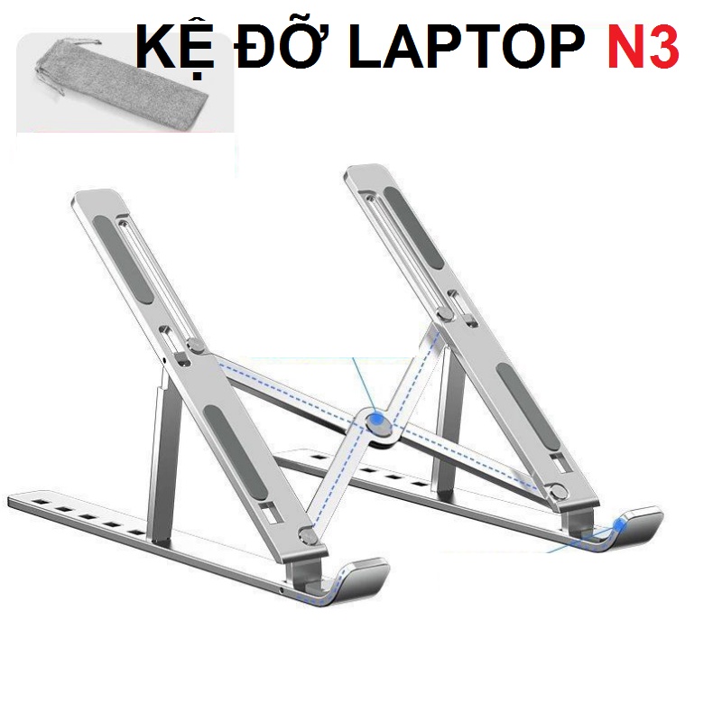 Giá đỡ laptop, máy tính bảng, điện thoại, macbook 13 - 17 inch bằng kim loại có thể gấp gọn điều chỉnh độ cao