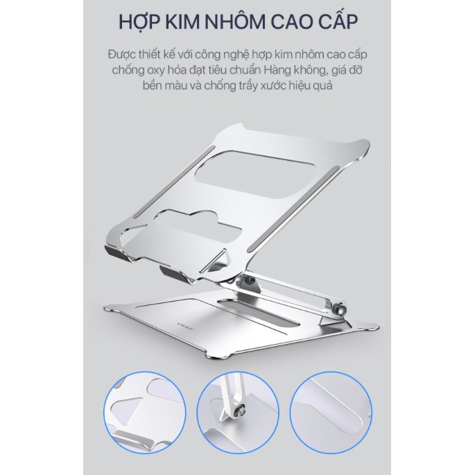 Giá Đỡ Laptop/Máy Tính Bảng VIVAN VLS01 Hợp Kim Nhôm Cao Cấp Tăng Giảm Chiều Cao Có Khe Tản Nhiệt - BẢO HÀNH 12 THÁNG