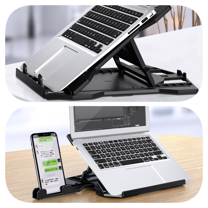 👉Thiết kế tiện dụng, có đệm nâng cao chiều cao của máy tính, thoải mái hơn khi sử dụng👉Hỗ trợ góc đứng hình tam giác, chắc chắn, ổn định và bền bỉ, cơ động và dẽ gấp lại khi mang theo