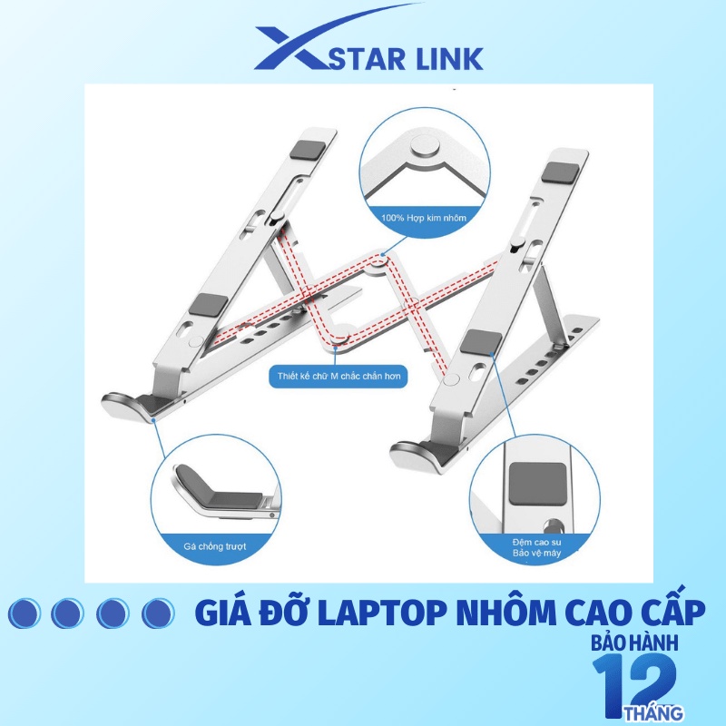 - Giá Đỡ Laptop Giá Đỡ Ipad được làm bằng vật liệu nhôm cao cấp cứng cáp và gọn nhẹ, siêu bền, chịu lực tốt