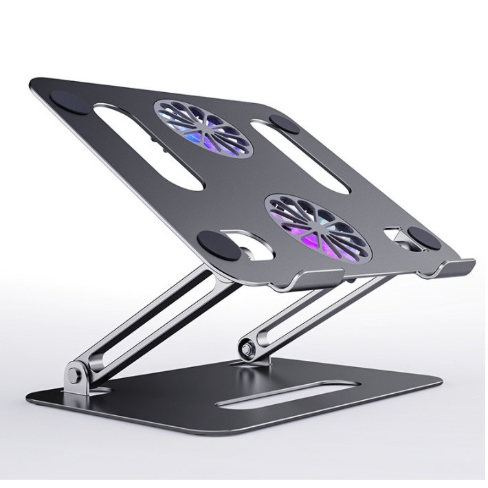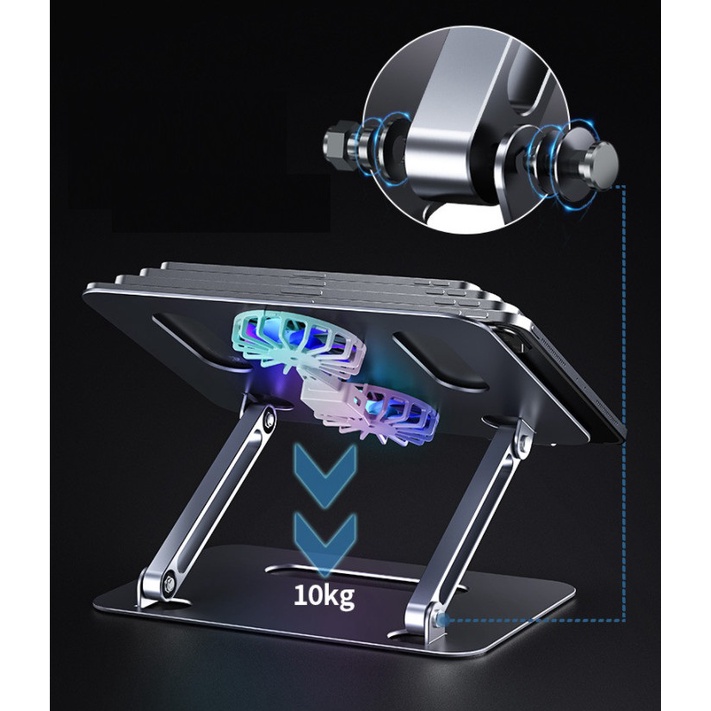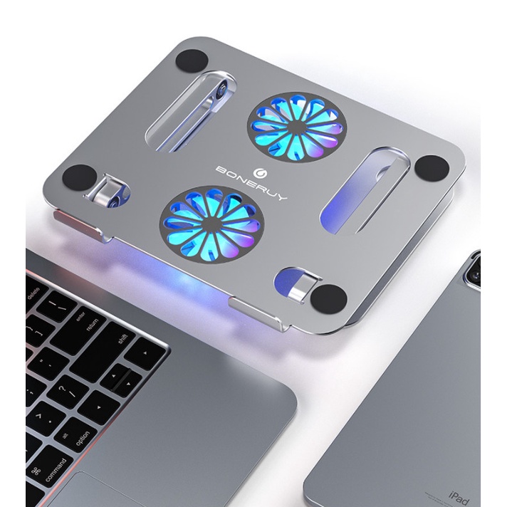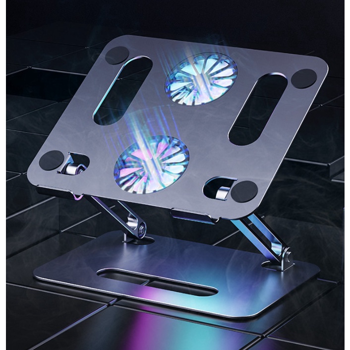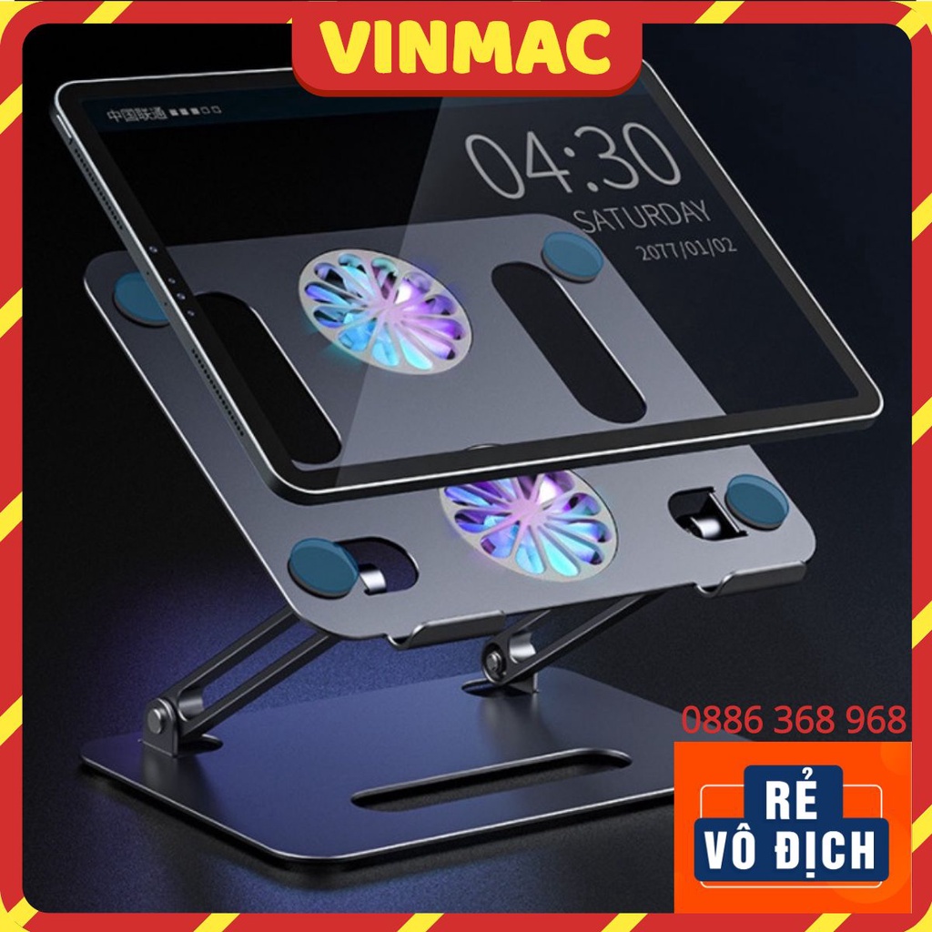 Giá đỡ MACBOOK, LAPTOP, IPAD nhôm gấp gọn tản nhiệt máy tính 13,14,15.6 inch tích hợp quạt tản nhiệt LED cao cấp để bàn