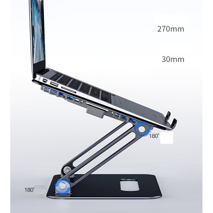Giới thiệu Giá đỡ MACBOOK, LAPTOP, IPAD nhôm gấp gọn tản nhiệt máy tính 13,14,15.6 inch tích hợp quạt tản nhiệt LED cao cấp để bàn