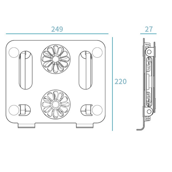 Giá đỡ laptop nhômSử dụng máy tính laptop macbook thường xuyên không tránh khỏi máy bị nóng lên làm giảm hiệu năng làm việc rất nhiều. Chính vì vậy đế tản nhiệt 2 quạt lớn sẽ giúp máy tính laptop làm việc giảm nhiệt độ, hiệu năng sẽ trở nên nhanh chóng hơn, làm việc, chơi game đạt hiệu quả cao