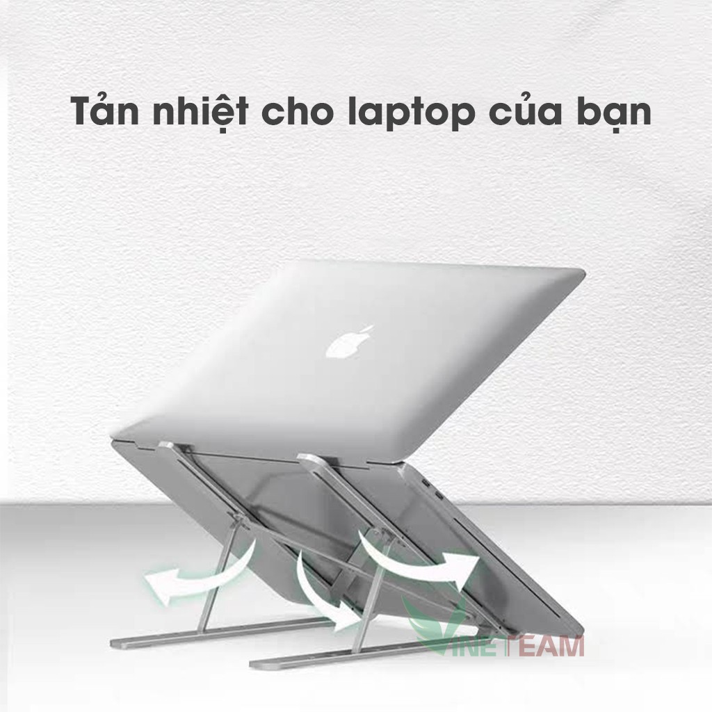 ✔ Giá đỡ Laptop Macbook bằng nhôm mỏng, gọn nhẹ, có thể điểu chỉnh độ cao và hỗ trợ tản nhiệt Laptop