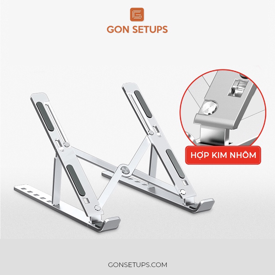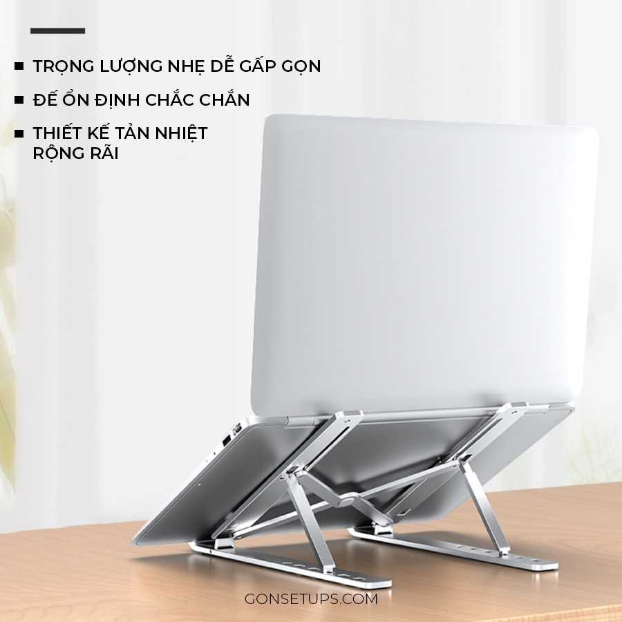 Giá đỡ laptop nhôm gấp gọn, giúp tản nhiệt tốt và có vải bảo vệ chống trầy GỌN Setups