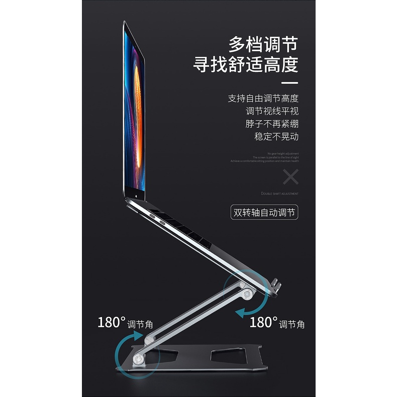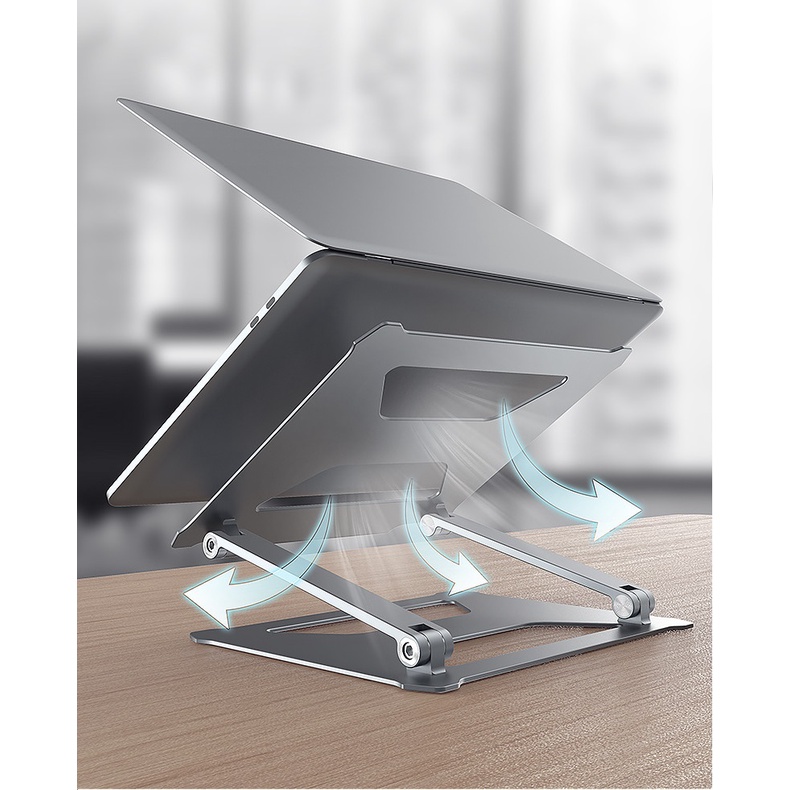 Giá đỡ laptop nhôm tản nhiệt có thể gấp gọn kích thước lớn từ nhôm cao cấp chắc chắn, điều chỉnh độ cao, độ dốc.