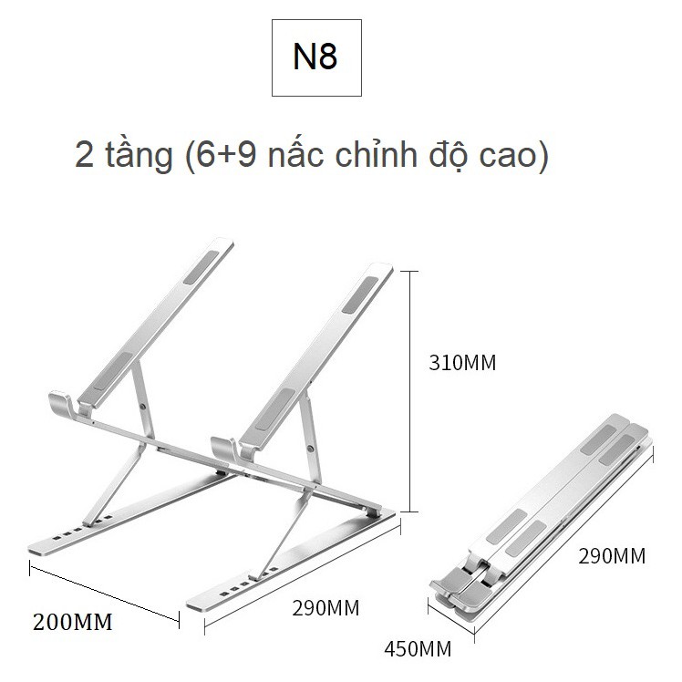 Máy tính & Laptop > Phụ Kiện Máy Tính > Bàn Laptop || Giá đỡ laptop nhôm N8 P55 thiết kế thông minh 2 tầng 15 nấc điều chỉnh độ cao, nâng tản nhiệt laptopCòn hàng